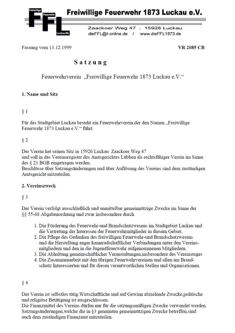 Satzung des Freiwillige Feuerwehr 1873Luckau e.V.